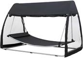 ‘Çatılı hamak’ olarak bilinen, yaklaşık olarak 230x140x205 cm ölçülerinde eşya. Eşyanın yatak kısmı; zemine yerleştirilmek üzere tasarlanmış, metal (çelik) barlardan mamul, üçgen standın tavanına asılmış haldedir, 100x190 cm ölçülerindedir ve uzun kenarları yumuşak bir kavise sahiptir. Kısa kenarları ise doğrusal barlardan oluşur ve kumaşla kaplanmıştır. Eşyanın tekstil malzemeden mamul bir çatısı ve sivrisineklere karşı cibinliği bulunur. Eşya 45 kg ağırlığındadır ve maksimum 180 kg’a kadar ağırlığı taşıyabilir. Hava şartlarına dayanıklı malzemeden mamul olan eşya, açık havada kullanıma uygundur. (*)
