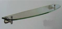 Duvara monte edilmek üzere montaj unsurlarıyla birlikte sunulan camdan mamul tek raf. Cam raf yaklaşık olarak 60x13,5x0,7 cm ölçülerinde şeffaf cam plakadan oluşur, köşeleri işlenmiştir ve düzensiz şekillidir (öne gelecek kenarına kavisli bir şekil verilmiştir). Nikel ve krom kaplanmış, bakır ve çelik (pirinç) alaşımlı iki adet duvara montaj aparatına takılabilmesi için eşyanın iki ucuna birer delik açılmıştır. Ürün, montaja yönelik vidaları ve dübelleriyle birlikte karton bir kutuda demonte olarak sunulur. (*)
