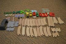 Aynı ambalaj içinde perakende satışa sunulan oyuncaklar: - plastikten mamul pille çalışan lokomotif ve vagon, - ahşap raylar, - trafik işaretleri, arabalar, insan figürleri, hayvanlar, ağaçlar vb.’den oluşur.